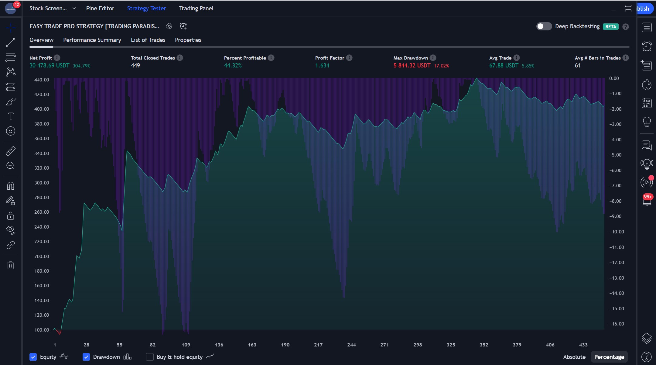 2) Our TradingView strategy studies primarily focus on timeframes from 5 minute to 1 hour, ideal for automated strategies. However, you're welcome to test these strategies on higher timeframes according to your trading preferences.
